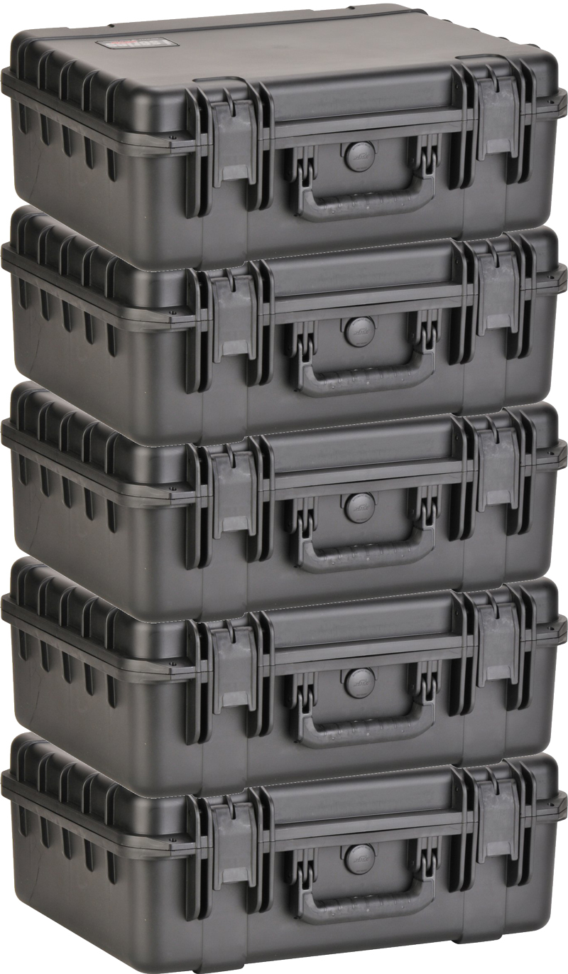 SKB iSeries Injection Molded Mil-Standard Waterproof Cases are molded of ultra high-strength polypropylene copolymer resin, featuring a gasket sealed, water and dust tight, submersible design (MIL-C-4150J) that is resistant to corrosion and impact damage. Features a molded-in hinge, patented trigger release latch system, comfortable, snap-down rubber over-molded cushion grip handle, automatic ambient pressure equalization valve (MIL-STD-648C). Our iSeries line is resistant to UV, solvents, corrosion, fungus and impact damage (MIL-STD-810F).